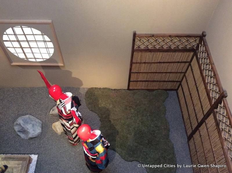 Untapped Cities had to talk our way in with a deliveryman, a gambit that paid off splendidly. After removing our shoes, KeiSui-An’s manager Kumi Shimizu invited us to wander the two-floor space; and explained there is yet another floor out of view where cultural exchange guests stay in traditional style at their secret ryokan. In addition to the notable silence of the two rooms available to tour, the color of the kimonos popped amidst the traditional Japanese architecture.