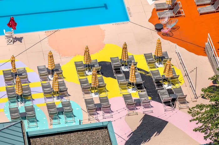 The Manhattan Park Pool Club on Roosevelt Island has unveiled its colorful and eye-catching design for the summer of 2020. Every year a different artist is invited to transform the pool deck into a work of art. The program, which has run annually since 2015, is the result of a partnership between Citi Habitats New Developments, design firm K&Co, Pliskin Architecture, and Manhattan Park. The designs are always fun, bold, and vibrant. This year especially, the pool mural brings a much needed brightness to New York City’s summer activities.