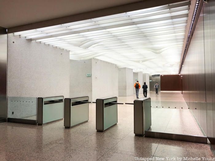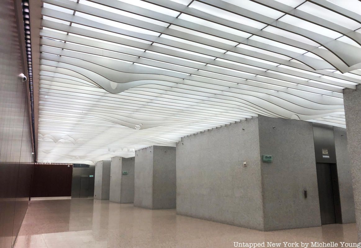 A visit to the lobby of 666 Fifth Avenue is a testament to that. The long hallway feels oddly mundane and oversized, which makes sense given its previous outdoor location, but as a result your eye is immediately drawn to the translucent Noguchi canopy above and the Bethlehem steel wall piece along the corridor. This was once a waterfall, which fed into a plant bed — you can imagine how peaceful this all once was within the bustle of Midtown Manhattan.