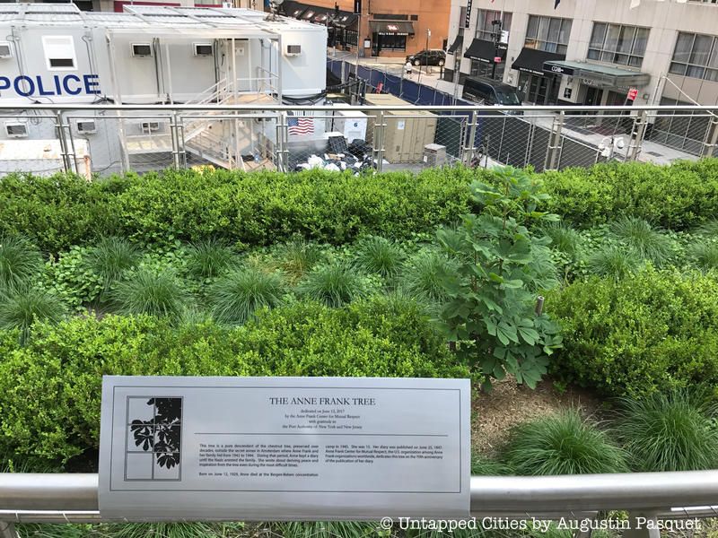 The original chestnut tree lived until 170 years old, downed by moth and fungal infections. The Anne Frank House decided to use the chestnuts to create seedlings and saplings for clone trees to be planted to locations dedicated to Anne Frank – now known as The Sapling Project. This tree at the World Trade Center was planted on May 16th, 2016.