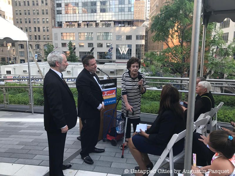 Members of Anne Frank’s family attended the memorial, including Monica Smith, her younger cousin who spoke of how Anne brought her food when she was interned in a refugee camp in Amsterdam, arriving with fingers full of ink and a lot of hope. Peter Kohnstam, a neighbor two doors down who was babysat by Anne before she and her family went into hiding from 1942 to 1944. It was Kohnstam’s mother who suggested that Anne keep a diary. Also attending the event was the 23-year old survivor of the recent Portland train attacks, Micah David-Cole Fletcher. Official announcements were made by Steven Plate, Chief of Major Capital Projects at the Port Authority of New York and New Jersey, Latisha James, Public Advocate of the City of New York and Steven Goldstein, Executive Director of the Anne Frank Center for Mutual Respect.