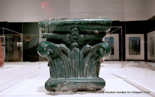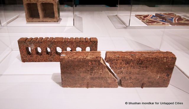 To procure the objects, co-curator Andrew Dolkart tells Untapped Cities that they “visited several firms that specialize in the preservation and restoration of landmark buildings” to find the objects. Curator Donald Albrecht adds, “there are also building components from buildings that have been restored. There are tiles from Bethesda Terrace, there are old and new brick from Carnegie Hall, and there are marble panels from the Metropolitan Life Building.”