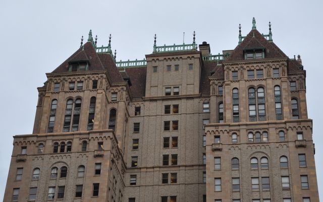 The building underwent a $23 million restoration between 1999 and 2001. At this time the building was seismically upgraded, and modern telecommunications systems were added. What the casual visitor will notice, however, is the restoration of the marble entrance and the elevator lobby. The restoration brought an old-time glamour back to the building. Even the bathrooms were given classic wood doors and antique tile walls. At the time, replacing the copper spires atop the building proved cost prohibitive. However, they were eventually restored in 2005-at an additional cost of $450,000, giving this beauty the crown she so deserved.