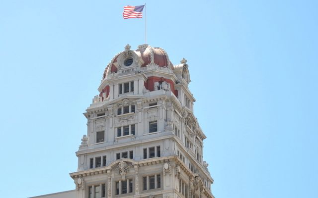 Meyer chose to crown the building with a highly stylized dome. This dome was originally intended to mimic the Call Building, which was subsequently destroyed in the 1906 fire.