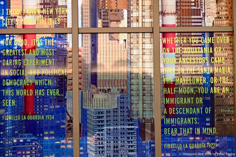 In a reference to Mayor LaGuardia, Hornig included 20 quotes from or about him, including one that states “Would you say these ideas are radical?” Another of his quotes amid skyscrapers says, “We have established the lesson for the entire world. We have demonstrated that it is possible for people coming from all lands and climes of the world… to live together as good neighbors, in peace and harmony. If we can do it here, it can be done elsewhere.”