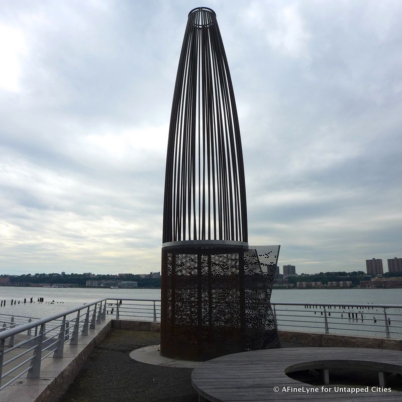 Untapped Cities learned that after further consideration, on July 22nd, the New York City Department of Parks allowed the artist to move forward in allowing the original installation, with noose, to be placed atop the metal body. The sculpture, now reflecting the artist’s original intention, stands tall overlooking the Hudson River near 70th Street.