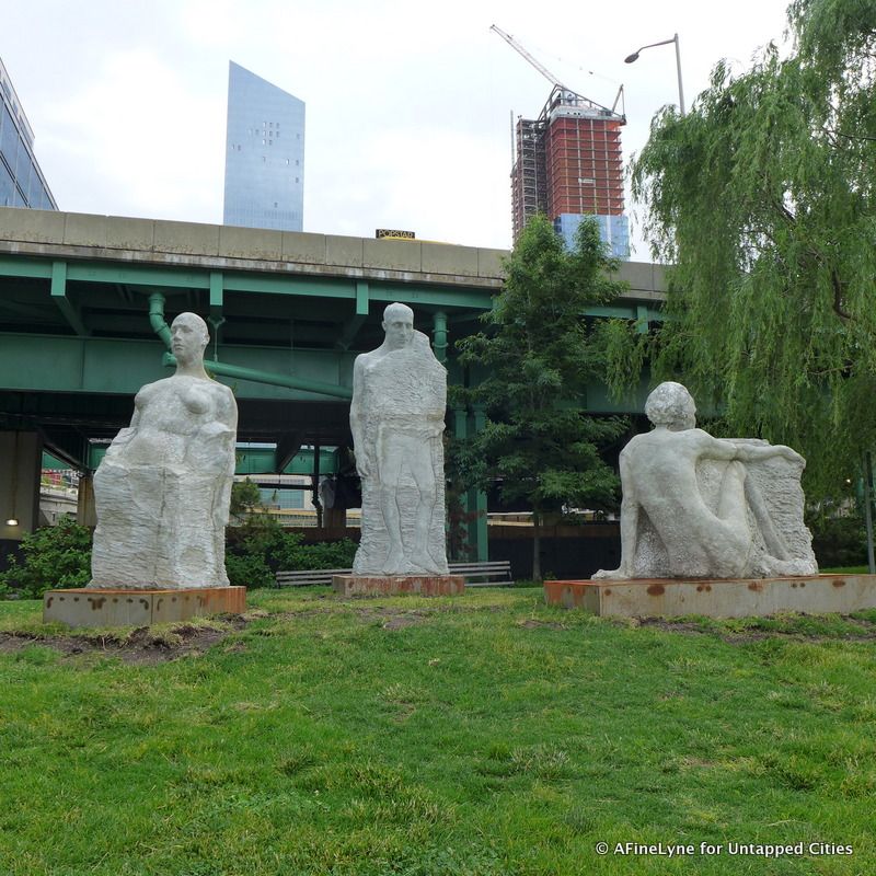 View of Riverside Park, with “Leaves of Grass” in the forefront, followed by “Bridge” and “Everything Between”