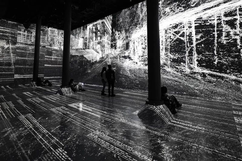 Through data examination, TRUST observes how historical events have impacted society’s ability to trust and how this could potentially evolve in the future. The exhibition visually displays historical news and blockchain data points, encircling visitors from all angles in its alluring and fragmented interpretation of grid street plans, graphs, and interconnected floating hands. Much of TRUST’s visuals are monochrome — homing in on the exhibition’s dual nature of presenting real-world situations through the lens of the digital world. TRUST highlights how the presence or absence of trust can shift the perception of our individual realities, giving new meaning to what it means to live in the 21st century.