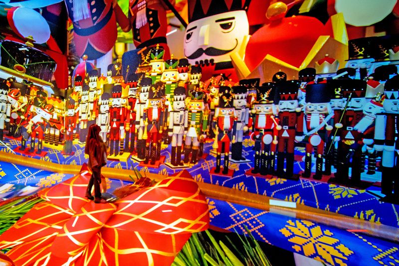 Spectacular Factory, the new immersive holiday experience at ARTECHOUSE, brings everyone’s favorite holiday themes to life. The new show immerses guests in an imaginative multiverse of different digital holiday worlds. Visitors will float among giant swinging jingle bells, crash the party of a thousand nutcrackers, join a thrilling train ride through wreaths, take a spin in the candy cane carousel, and more!