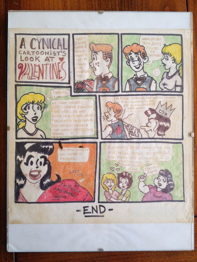 Lucy: I always loved reading comics. Archie was my favorite, but I also liked TinTin and Calvin & Hobbes. I even wrote and drew an Archie fan comic when I was about eight or nine. It was my vision of how the love triangle should have been resolved, and involved Betty hiring Jughead to kill Archie, giving Veronica lard chocolates, and marrying Midge (Moose’s girlfriend).