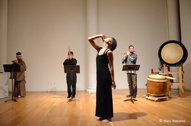 Himizukaze, a benefit to raise money for the Japanese earthquake relief at Tenri Cultural Institute, NY. Watanabe (right) along with Sadahiro Kakitani, Yoichi Fukui and dancer, Mana Hashimoto.