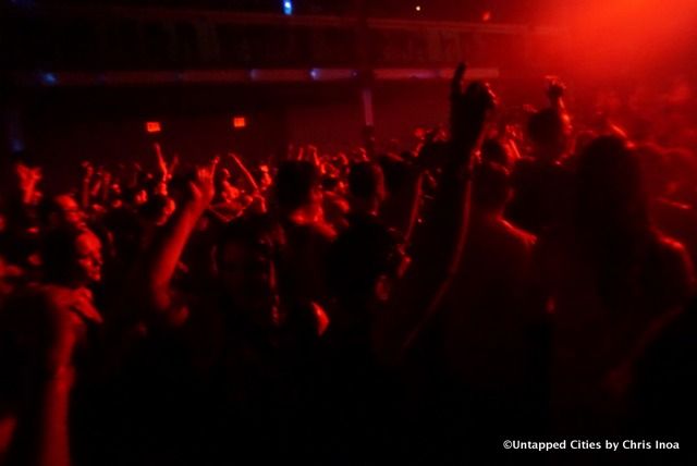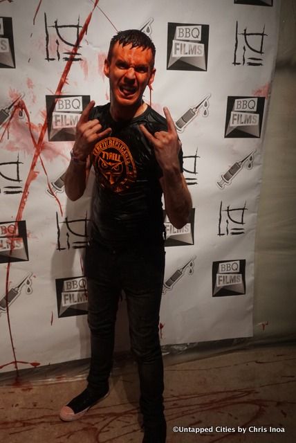 For those who were not brave enough to dose themselves in the red stuff, the other two floors were kept nice and dry for people to drink, dance and yes, watch the film from the safety of the roof. From what our host Deacon Frost (nice guy, even though he vapes), told us, this rave was to raise the blood god. The “blood” was a blend of liquids made by some specialists, who according to BBQ Films have vanished. The band the Crystal Method, the electronic band whose music appeared on practically every film and video game we spent money on in the early 2000s, did appear though and they performed cuts while the blood rained on us all.