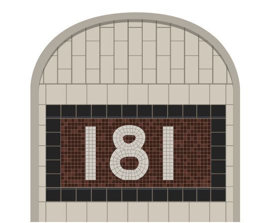 In many cases, Chang captures key elements of surrounding tiles, visually capturing key elements like the vaulted architecture of 181st Street A train stop or the red square tiles at 34th Street B/D/F/M.