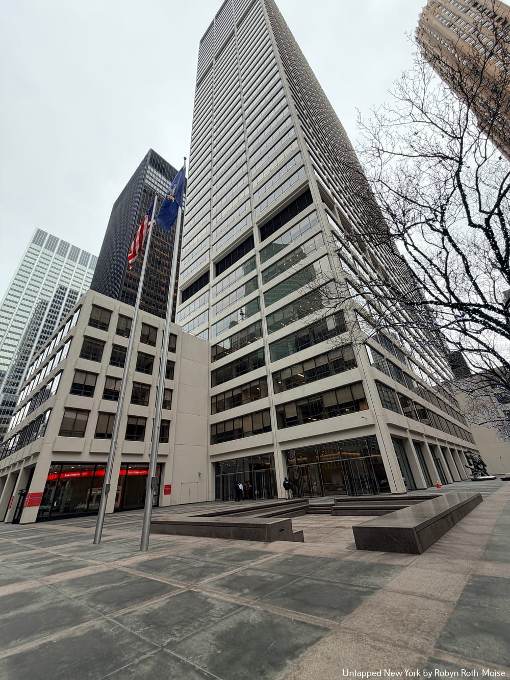 The site had two high-profile neighbors that couldn’t be more different from each other. To the north is the Seagram Building, completed in 1958. Designed by starchitects of the day, Mies Van Der Rohe and Philip Johnson, the 157-meter skyscraper won many awards and made history with its use of materials and structure.