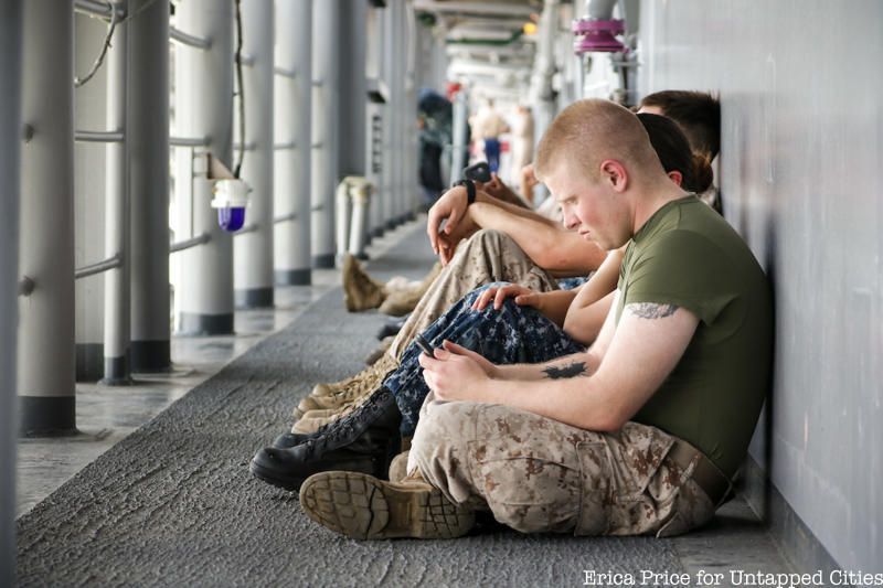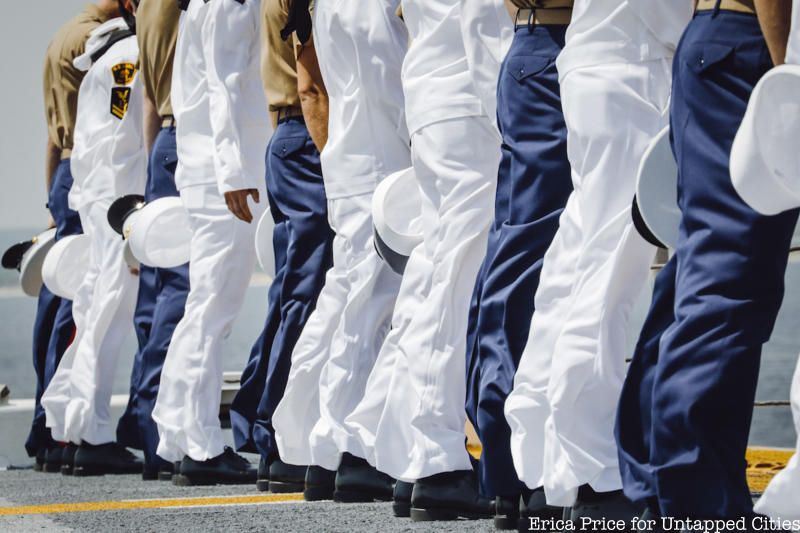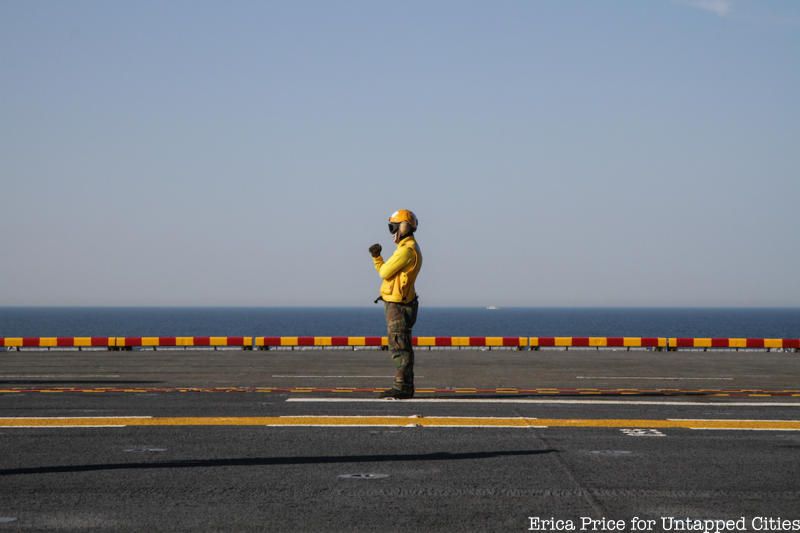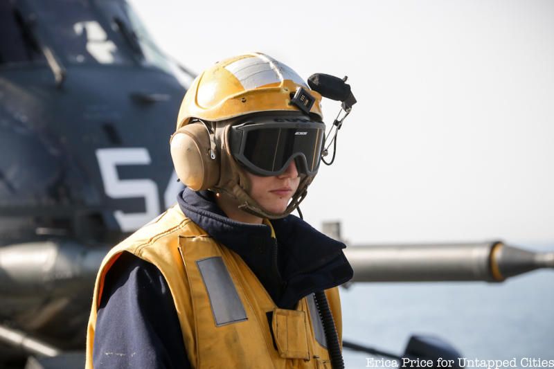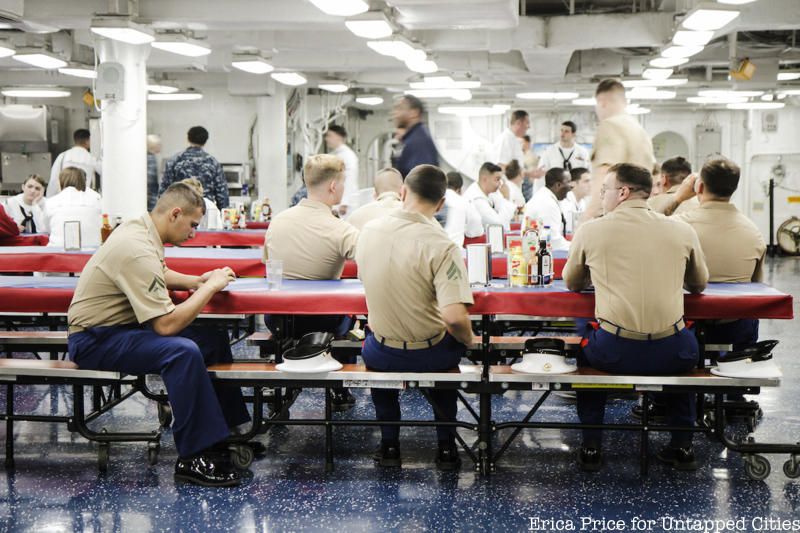 One of the treats for New Yorkers, adults and kids alike, is to go aboard military ships during New York City Fleet Week, which is in full swing. As media, you can even stay overnight on a ship. Two years ago, Untapped Cities’ photographer Erica Price went aboard the USS Bataan, a US Navy Wasp-class amphibious assault ship named in honor of the defense of the Bataan peninsula in Manilla Bay, the Philippines, during World War II. The ship, commissioned in 1997, has a strong connection to New York, being part of the force that were the first to respond after the September 11th attacks, where it could have been utilized as a floating hospital had there been more survivors.