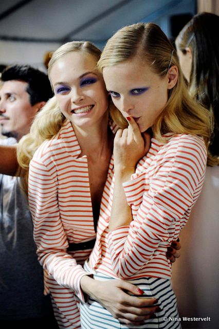 Models Siri and Hanne backstage at Cacharel