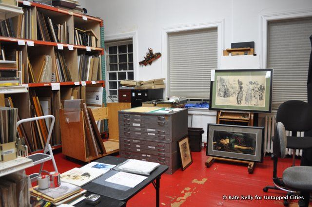 After years of taking in and enjoying the public galleries at the Society, I became increasingly curious about the 1,700 other pieces that I was not seeing at any given time. The building, a stunning 5-story townhouse, only opens 3 of its floors to the public, concealing a library, office, and veritable ‘warehouse’ of some of the most beautiful works that have been created in the United States. I had to get up there.