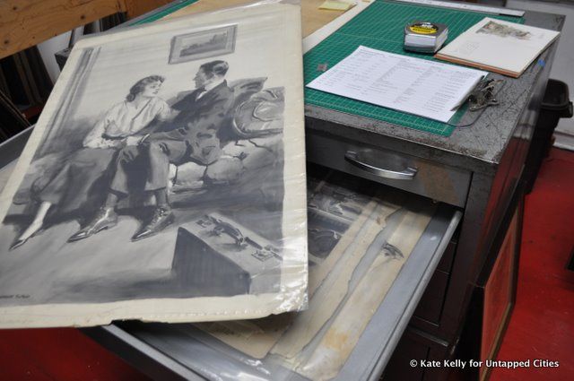 Of course, not all of the originals are able to have a home in a frame, as the volume would be monstrous. Many pieces are carefully wrapped and preserved in flat files throughout the office.