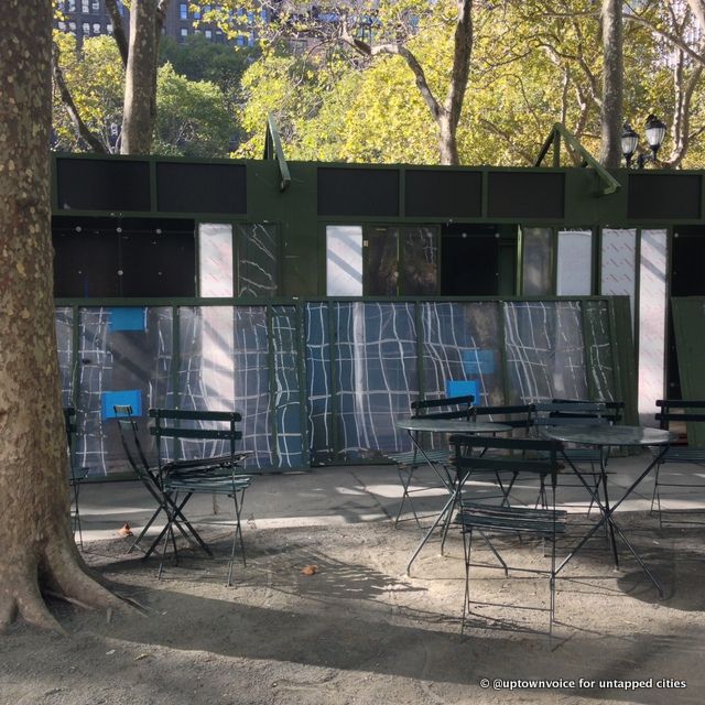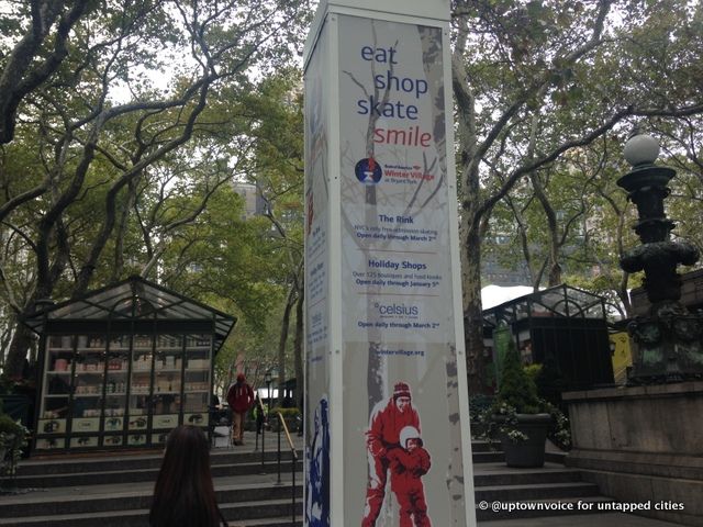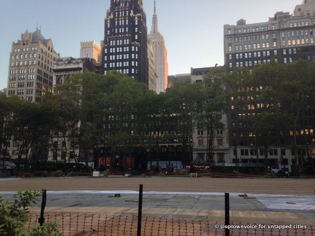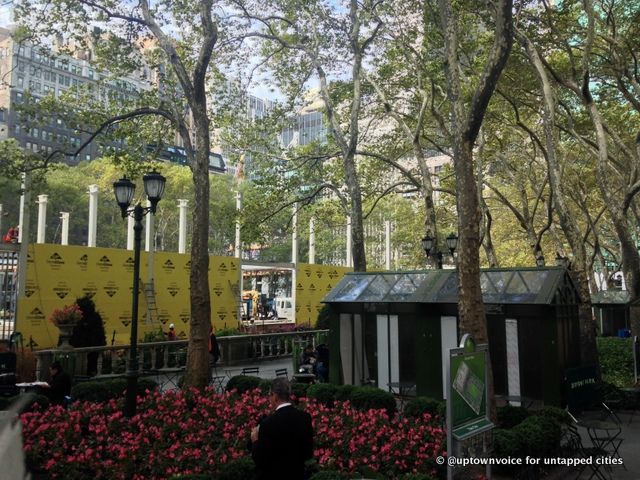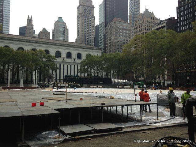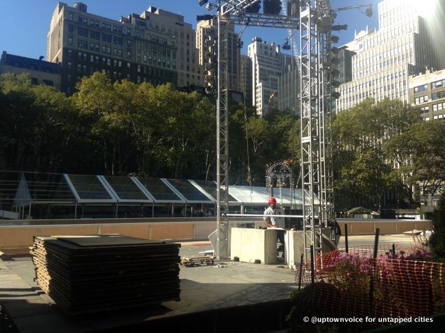 Crews finishing up the Bryant Park Winter Village for tomorrow’s opening.