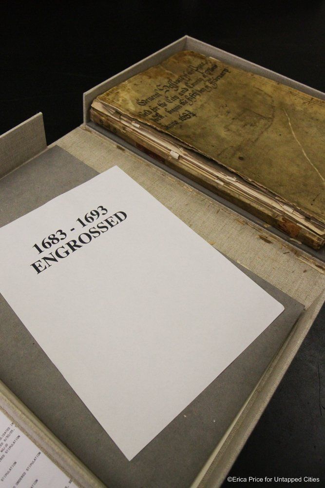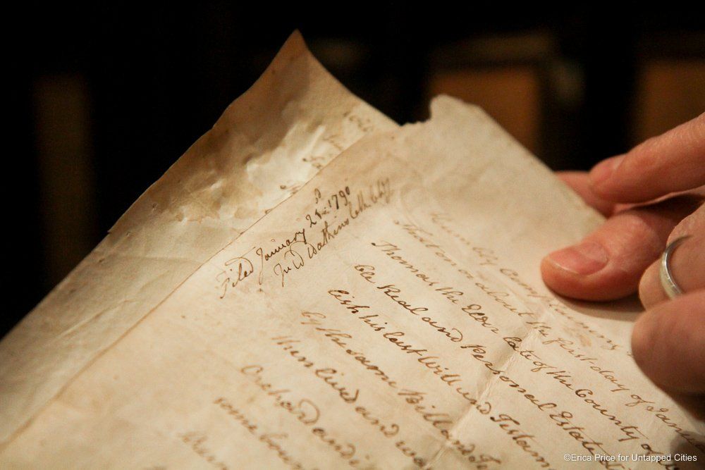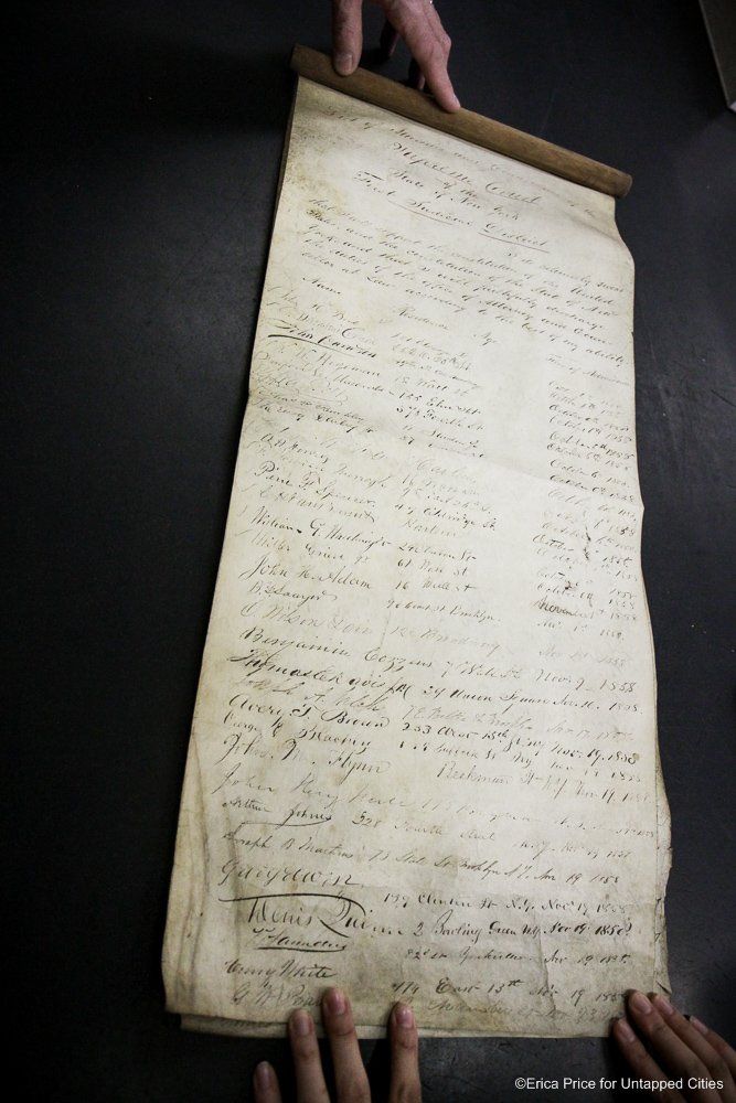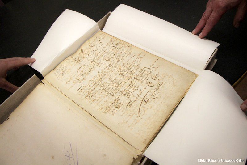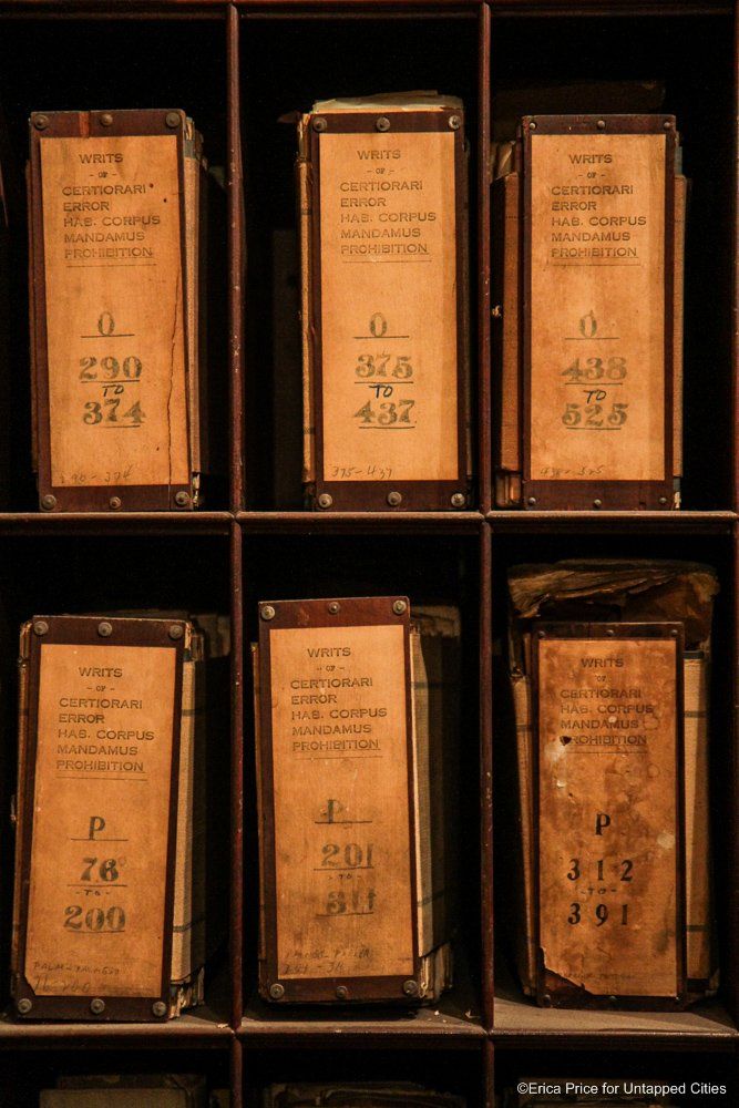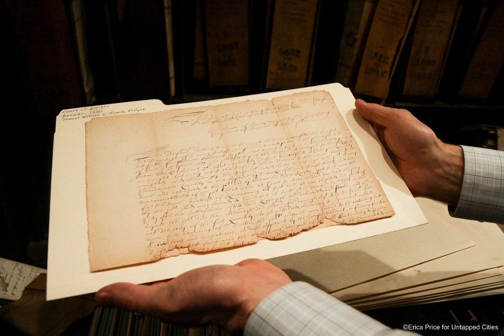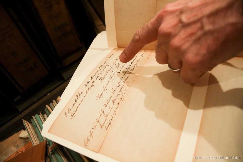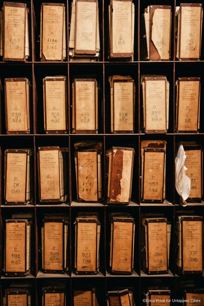 If the Untapped Cities staff could conjure up a vision of heaven, it would probably be the New York City Surrogate Courthouse’s Division of Old Records. The name itself suggests a little of Hogwarts mixed with a lot of old New York, and the place certainly lives up to its imaginary potential. With records that go back to 1674 and documents signed by the likes of Alexander Hamilton and Aaron Burr, it’s a treasure trove of New York City and American history.