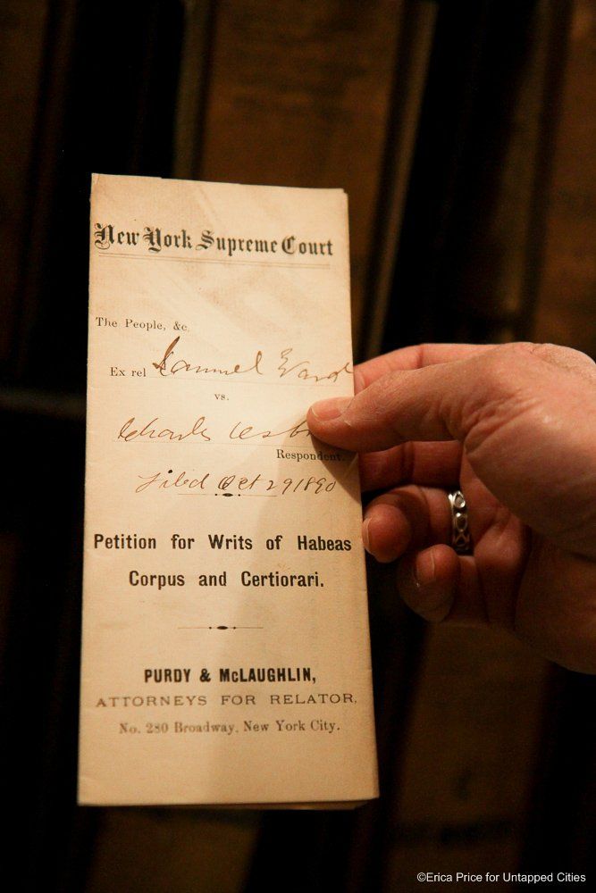 We recently visited the Division of Old Records with the passionate people in charge – Geof Huth, Chief Records Officer, Joseph van Nostrand, archivist for the Manhattan county clerk, and Jane Chin, Deputy Chief Records Officer – who organize and save the historical documents for posterity. We also recorded a Facebook live video of part of the visit. As van Nostrand tells us, “We’re concerned about preserving the records for the future and giving people access to them. Because I’m all by myself here, and we have a few staff members, but they’re not going to replace anybody that leaves.”