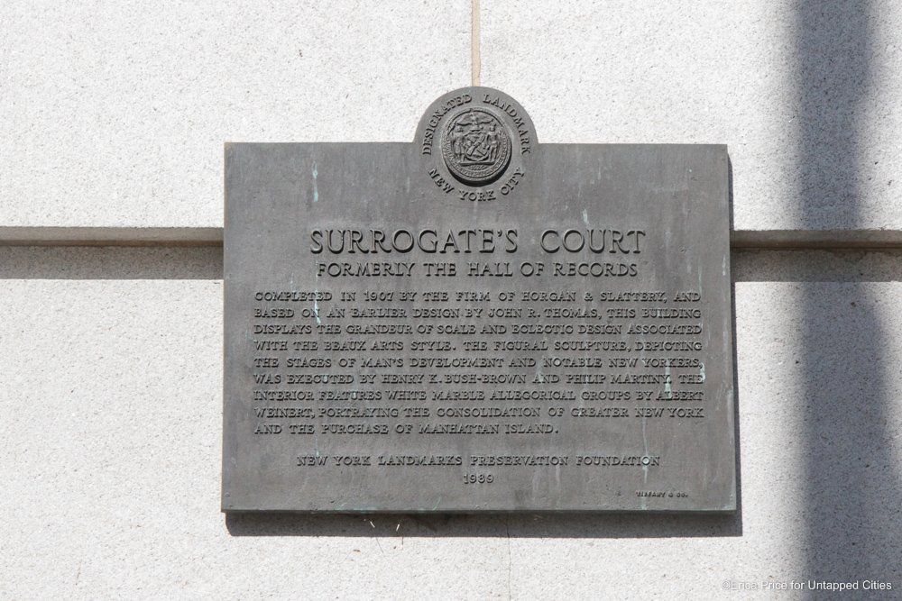 Far from a basement archive, the Division of Old Records is located on the top floors of the stately Beaux-Arts style New York Surrogate’s Courthouse where the Municipal Archives is also situated. The building is a formidable architectural competitor to nearby government institutions like the Tweed Courthouse, the Municipal Building, and City Hall.