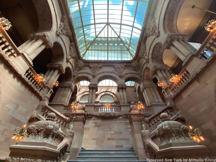 Many New Yorkers have been riveted by Governor Andrew Cuomo’s daily press briefings since the onset of the coronavirus pandemic. His popularity has skyrocketed, reaching 77% at the end of April (and 87% specifically to his handling of the pandemic). Many cite Cuomo’s straight talk during the press briefings as one of the reasons for their approval, so we checked one out yesterday and took in the stunning architecture of the New York State Capitol building in Albany.