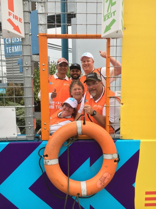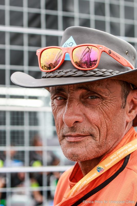 Track marshal from the U.K.; volunteer workers came from the U.K. and around the U.S., including a few locals