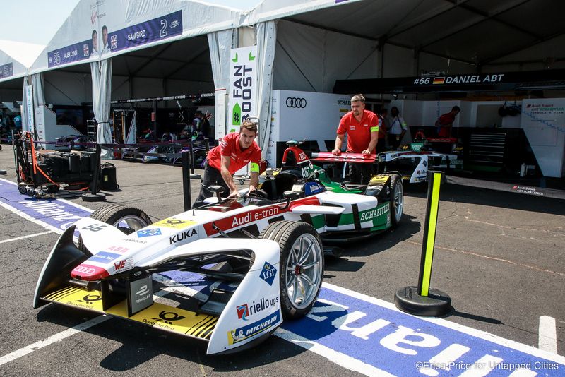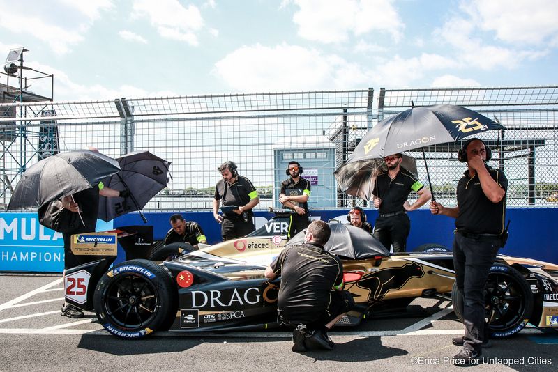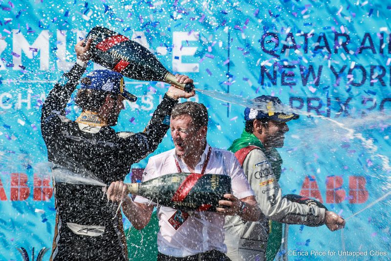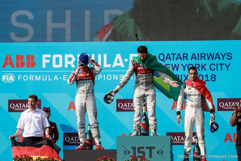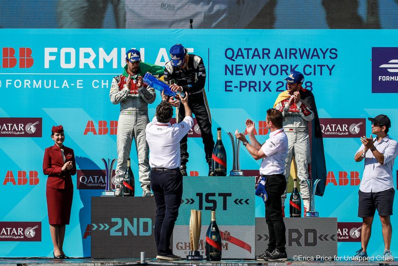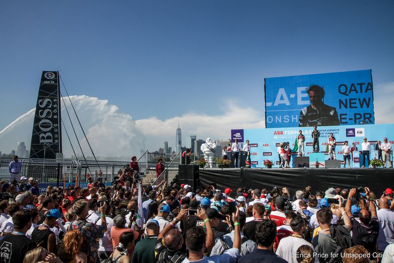 The event consisted of two back-to-back races with all 10 teams and 20 drivers competing for the championship. These eagerly anticipated races would define the entire Formula E season, as driver Sam Bird sought to finish first ahead of Jean Eric-Vergne of the Techeetah team. Set against the iconic background of the Manhattan skyline, crowds gathered to watch the race. Untapped Cities was on site to cover all of the behind the scenes action, from preparation to the precise moment that Jean Eric-Vergne crossed the finish line and claimed the championship of this monumental race.