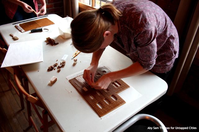 Because of the overwhelming response she got for her gingerbread brownstone last year, Baumann wanted to make her project more of a community event this year, where people could participate and become a part of the creation process. Her grand vision of a gingerbread streetscape therefore worked perfectly for such a collaboration, as it was a project that would definitely benefit from some extra pairs of hands. Baumann posted a call for volunteers on her blog a few weeks ago, and she soon had plenty of helping hands slotted for all nine days of the gingerbread block building schedule.