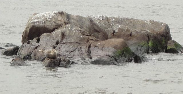 And a picture of Lou, the seal that sometimes emerges on the rock on the upper right, observing the construction and goings-on!