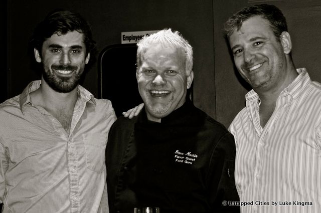 A DJ spun in the corner of the lounge, chef Dave Martin made jokes, putting the diners quickly at ease, and the bartenders secretly offered us tequila in honor of Tequila Day. We were curious though, what were Harris and Adam’s favorite dishes right now, especially that they’ve been able to sample nearly everything New York City has to offer through Underground Eats? For Adam, it’s the grilled shrimp and chorizo at Seamus Mullen’s new pop-up at The Standard Plaza (they were there again last night) and for Harris, the Kung Pao Pastramai at Mission Chinese. He says, “I can almost feel my face again…time to go back!”