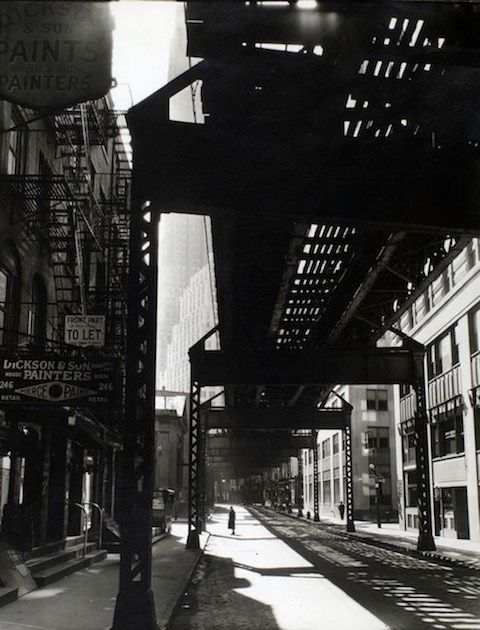 But, not long after Abbott arrived, life changed. The Great Depression crashed over the city, the construction boom slowed and Abbott began to realize she was photographing what she would later call “the end of something.” Like any photojournalist, she had her story; it existed in the juxtaposition of the newfangled skyscrapers and the prewar buildings — the architectural collision of past and present, the story of a changing city. While other photographers of the day like Dorothea Lange or Walker Evans turned their lenses towards the poverty-stricken sharecroppers across the country, Abbott turned to Rockefeller Center, to the growing concrete canyons, to the elevated train tracks.