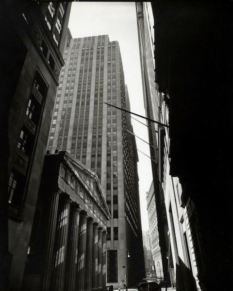 Pine Street: U.S. Treasury in foreground, near Nassau Street, Manhattan. (March 26, 1936). Photo via New York Public Library.