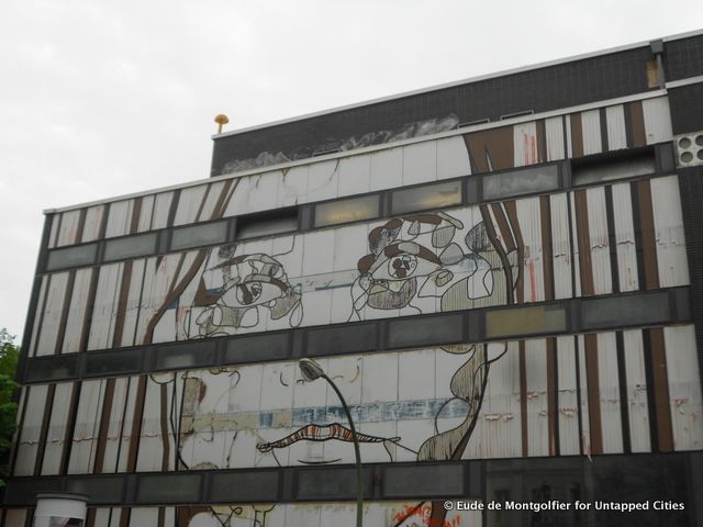 The building endured severe damage during WWII and its reconstruction finally commenced in the late fifties, as seen in the grey glass panels of the façade: