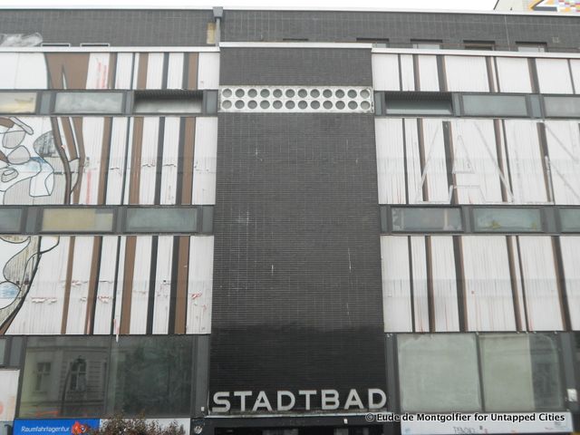 Stadtbad Wedding had to close its doors in 2001 for hygienic reasons. The site was sold to a property investor, Arne Piepgras, who has re-purposed the space for cultural events and concerts with a focus on street art. Numerous performances and events – from ephemeral abstract installation to trendy DJ sets – have taken place in Stattbad Wedding. As Stadtbad Wedding’s functions changed, so did its name in a very tricky way. It now carries the name of Stattbad (statt = stead), a way to convey its re-rebirth.