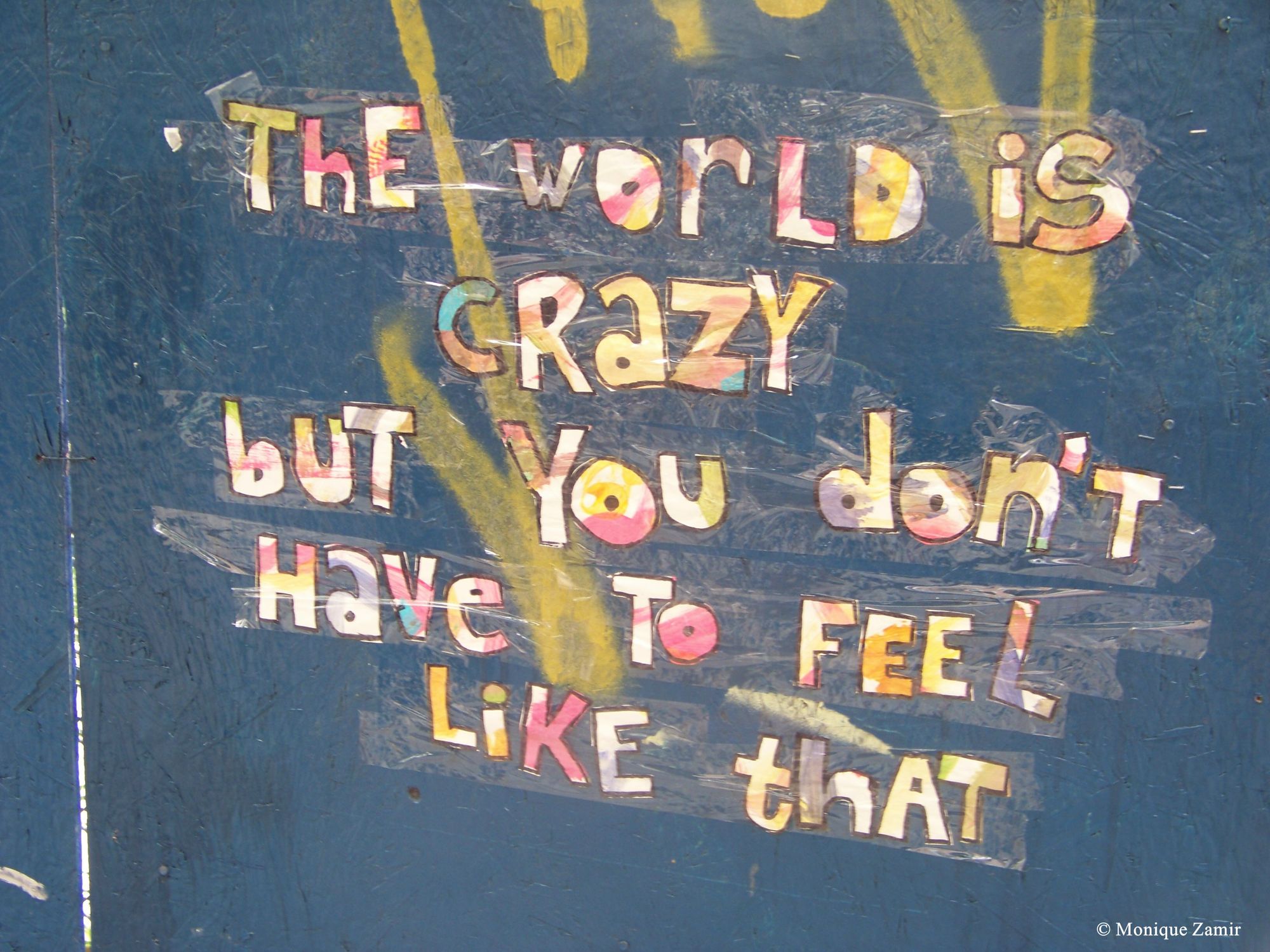 Things as simple as individually cut, hand-drawn lettering can become art when espousing a simple, encouraging and uplifting message. Part of the beauty of this sort of street art lies in this sort of cloaked anonymity–people donate their time, effort, talents and ideas for the sole purpose of sharing those ideas with others, sans money, sans quests for fame, sans corporate influences. These messages, through their anonymity, have a personal sway to them; they have a way of reaching into us and making us consider what was communicated as if someone close to us had spoken that idea.