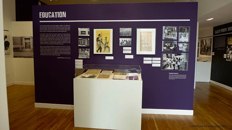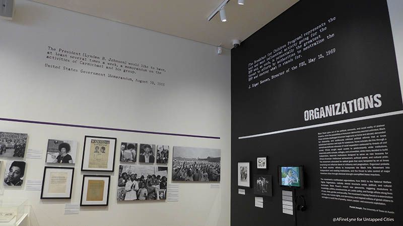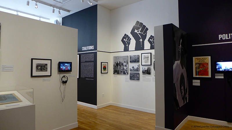Specific exhibit areas showcase Organizations, Political Prisoners, Coalitions, Educations, The Look & Popular Culture, Spreading the Word, Black Power International, the Black Arts Movement and more