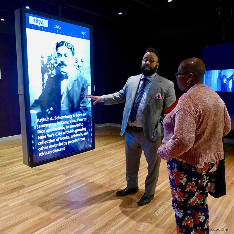 The exhibit is located in the newly renovated space within the original Carnegie Library on 135th Street