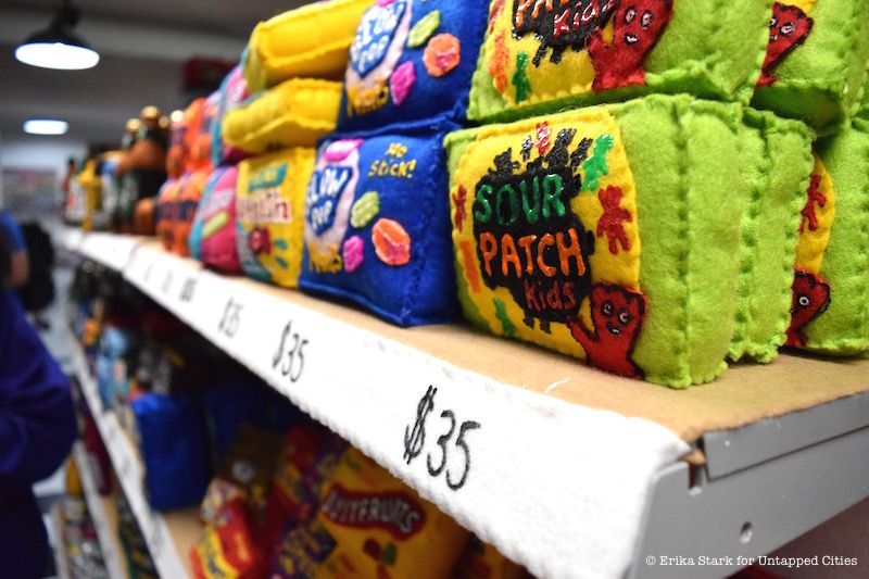 Nothing seems out of the ordinary as you approach the entrance of the store and take in the grocery-stocked front window (located on Little W. 12th Street). 8 till Late looks just like local, small-business bodegas that are smattered across every New York neighborhood. It even operates the same way: workers are there to help you find what you need and check you out at the cash register; an ATM sits in the corner if you’re short on cash, and every category of food you might need — including a deli counter with an assortment of all types of meat — are all available to purchase and take home. But take a few steps closer to the Sour Patch Kids, let your eyes adjust, and give your brain a few seconds to catch up — because everything is made entirely of felt.