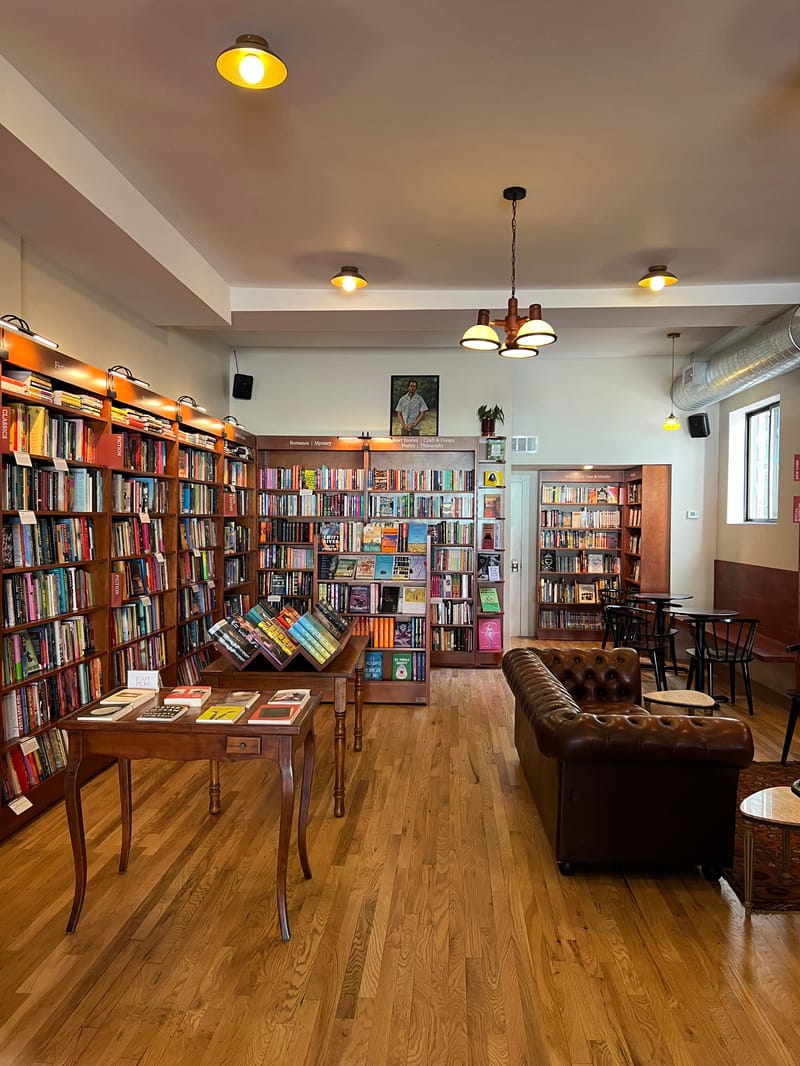 Though not a bookstore bar per se, The Fountain Bookshop is a vibrant community-centered bookstore in Washington Heights that doubles as an ice cream and soda shop. Established by longtime pastry chef Karah Rempe Pinto, who owns Dutch Baby Bakery just a few doors down the street, the Fountain Bookshop boasts an old-fashioned soda fountain as well as a large selection of ice creams, drinks, and desserts. (Pinto plans on expanding the menu to include a larger range of treats soon.) Pinto's background as an English teacher, combined with her experience as a pastry chef and dedication to creating a "third space" within the neighborhood, led to the conception of the Fountain Bookstore. This indie bookshop has corners you can cozy up in, shelves full of every genre you can possibly think of, and even hot chocolate during the holiday season. While no alcohol is served, we think the sweet treats here are just as much fun.