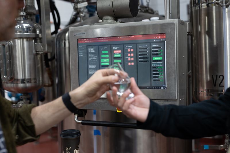 Before distillation, all whiskey essentially starts as beer, a mix of yeast, water, and grain. In a traditional distillation workflow, after this “distiller’s beer” or mash is made, it would be boiled and vaporized in order to collect the alcohol. At Arcane, they do things a little differently. After their in-house IPAs and Imperial stouts are brewed, the distillers use a custom vacuum distillation process instead of the traditional boiling method. This vacuum distillation allows the whiskey to be distilled at room temperature.