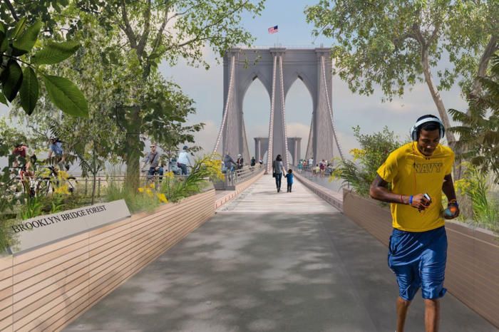 New Brooklyn Bridge Forest Brooklyn Bridge RedesignBrooklyn Bridge Forest; Pilot Projects Design Collective, Cities4Forests Wildlife Conservation Society, Grimshaw and Silman; New York and Montreal.