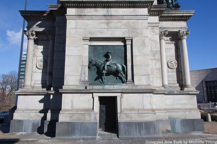 In the years to come, other war-related structures were added, like the Soldiers’ and Sailor’s Arch dedicated “To the Defenders of the Union, 1861–1865”. Architect John H. Duncan was tasked with designing the arch, and Olmstead and Vaux built the arch with Stanford White. President Grover Cleveland led the arch’s 1892 unveiling, and as part of the City Beautiful movement, three bronze sculptures on the arch were designed by Frederick MacMonnies. Equestrian bas-reliefs of Abraham Lincoln and Ulysses S. Grant sculpted by William Rudolf O’Donovan and Thomas Eakins, and MacMonnies also created Army and Navy sculptures depicting the Union Army and emancipation.