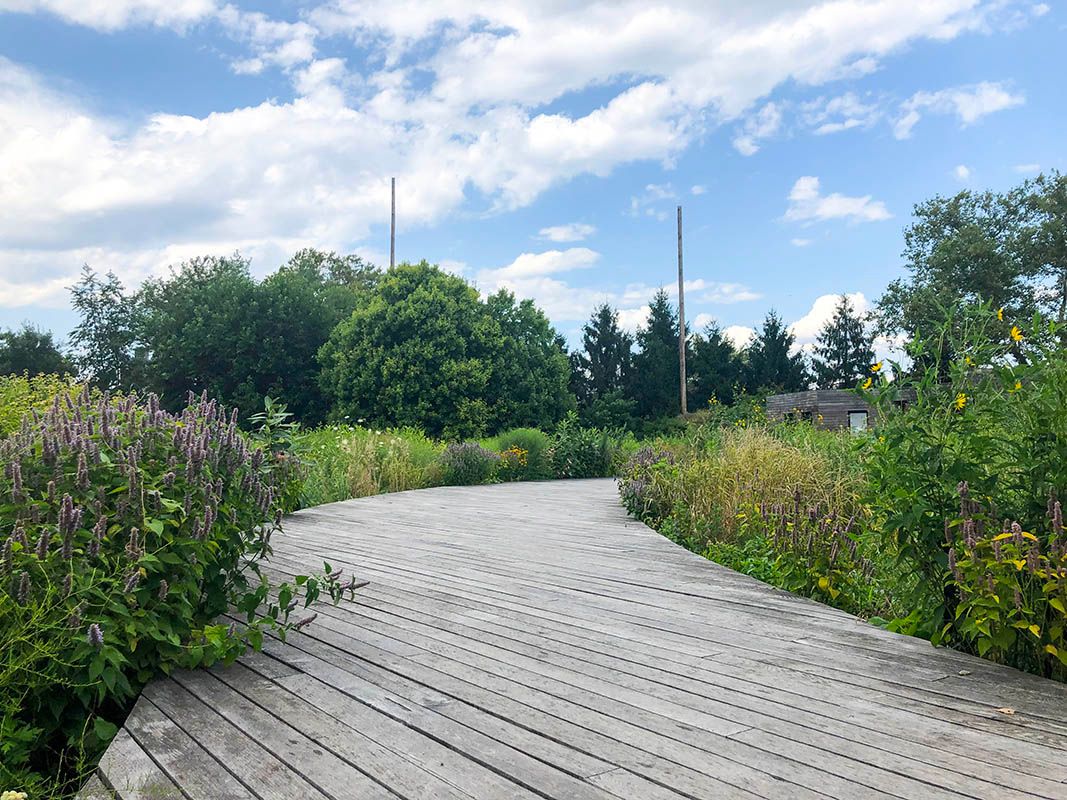 Just off Williamsburg Street West at the corner edge of Brooklyn Navy Yard is a gateway into a beautiful native plant and pollinator habitat teaming with life to honor the dead buried there from the Civil War to the Revolutionary War period. The Naval Cemetery Landscape which is a small pocket memorial meadow nestled between the BQE and Wallabout Bay is a hidden gem. Drop by to take a self-guided tour of the blooms, buzzings and birds along the boardwalk and stepping stones that make up this uniquely serene space.