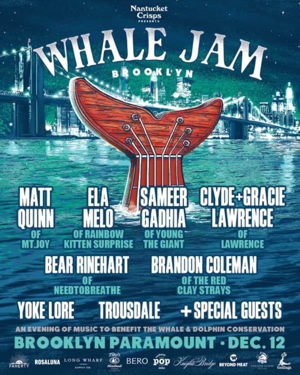 Whale Jam isn't just a great show in an amazing venue, it's all for a good cause. Since its inception in 2022, Whale Jam's mission has been to raise awareness for the endangered North Atlantic Right Whale. So far over $75,000 has been raised for the nonprofit Whale & Dolphin Conservation during concerts in Boston and on Nantucket.