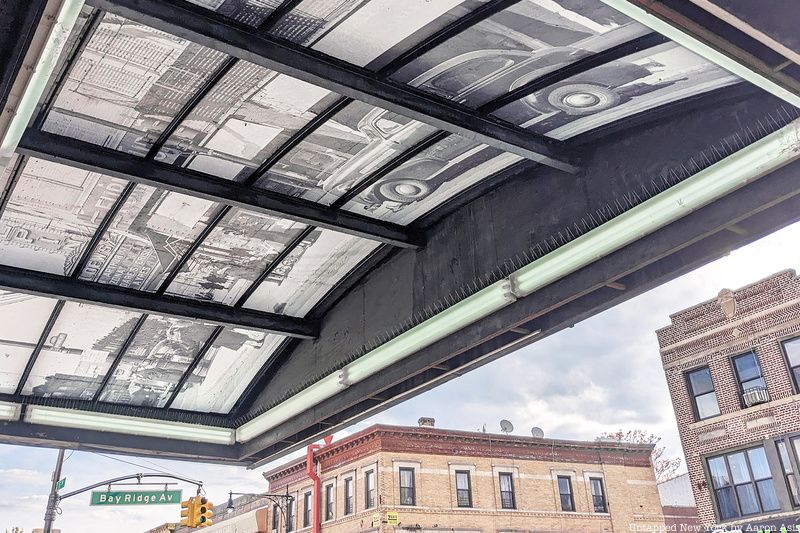 The enlarged historical image was shot from Bay Ridge Avenue looking up 5th Avenue toward the theater. In the shot, you can see a vintage car, a woman walking her dog, a lady pushing a baby stroller, a man in a hat, and other Brooklynites going about their day. Asis searched through a variety of photos for the perfect one to fit the site. Combing through images provided by the theater’s owners and images from various collections, he finally found the perfect fit at the New York Transit Museum archives.