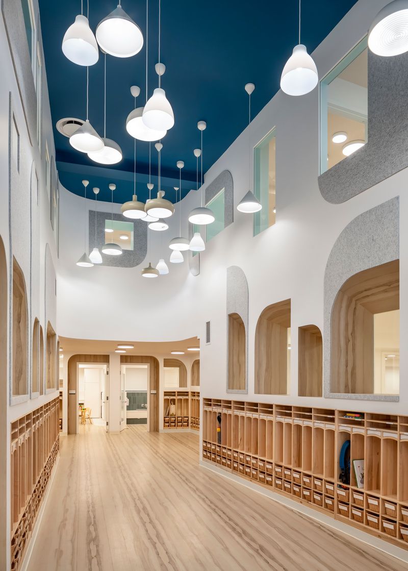 City Kids is a new childhood education center located in Williamsburg, Brooklyn. The project is an adaptive reuse of a former lumber warehouse located under an existing high-rise residential tower. Six preschool classrooms open onto a central double-height courtyard gathering space. The after-school program for elementary school students including specialized classrooms for cooking, theater, STEM, art, and movement are located up the stairs at the reception area. Please note: this tour is accessible by wheelchair.