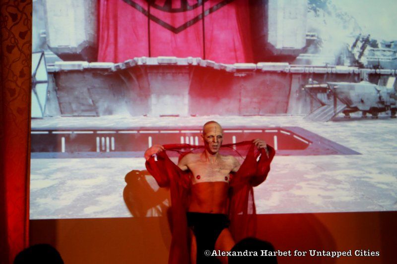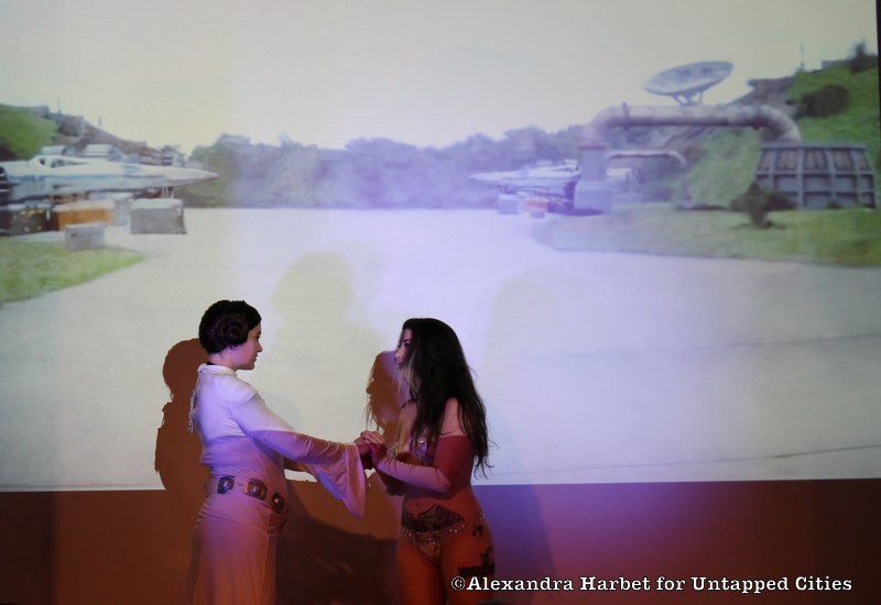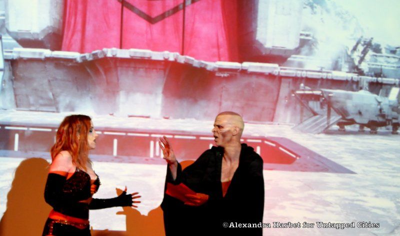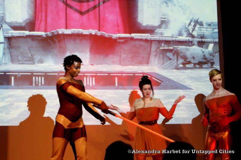 Francis Menotti as The Force and Liberty Rose as Rey posing for a photo for Untapped Cities at the end of their show, May the Fourth Be With You.