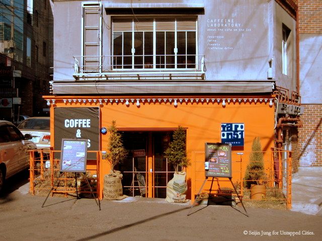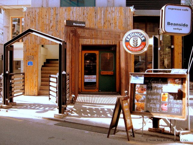 Wandering around the city’s trendiest areas, one can readily observe the the new café culture unfold–from conspicuous streets to secluded back alleys of the city. Most notably, the Hongdae area, which is better-known as one of the most popular nightlife destinations in Seoul, boasts cafés galore around its alleys. Literally, the name Hongdae comes from the nation’s most prestigious art college in the area. As the city’s capital of art, the area not surprisingly attracts artists, college students and visitors to the cafés.
